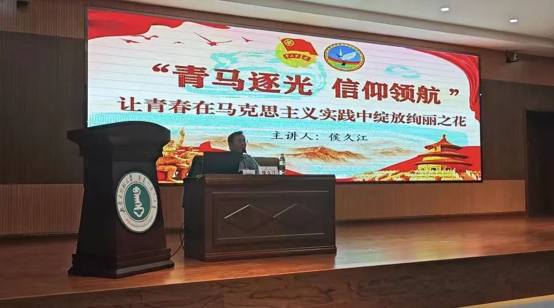 开班仪式结束后,音乐学院党委副书记侯久江老师以《“青马逐光,信仰领航”让青春在马克思主义实践中绽放绚丽之花》为题,为学员们开展集中授课。